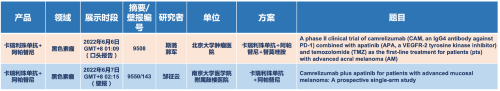 在黑色素瘤领域,Ag尊龙凯时医药的卡瑞利珠单抗联合阿帕替尼(“双艾”组合)在2022 ASCO共入选1项口头报告和1项壁报展示。